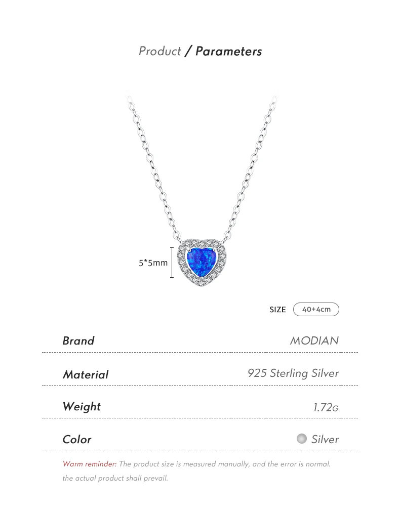 Collar con colgante de corazón de ópalo azul de MODIAN en plata de ley 925 auténtica para mujer, joyería fina, regalo romántico de aniversario.