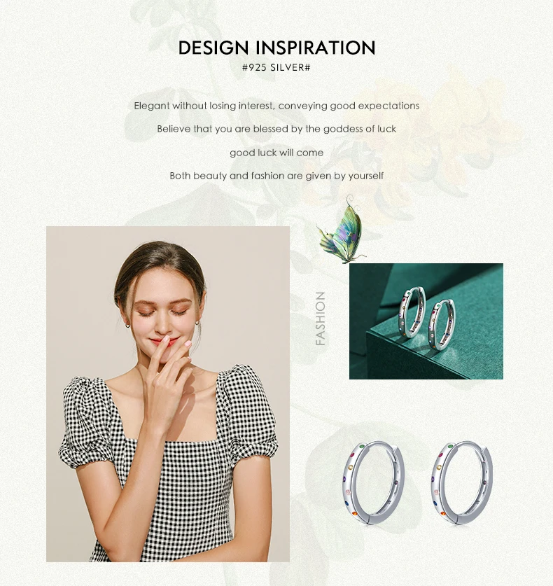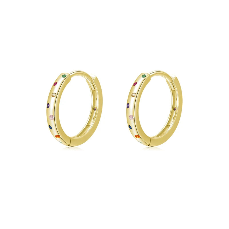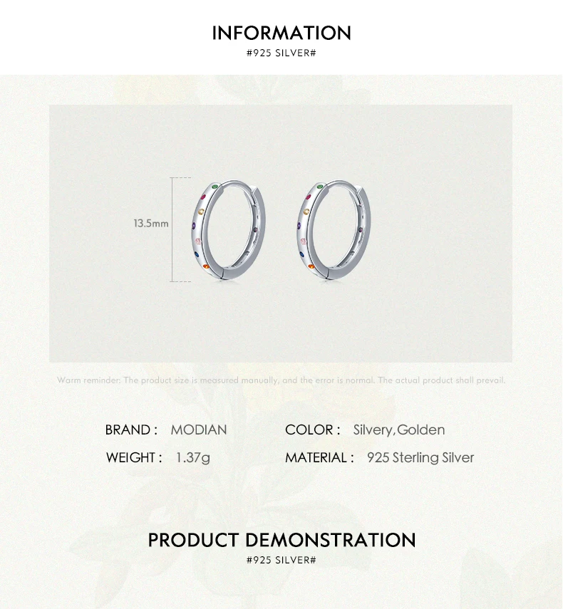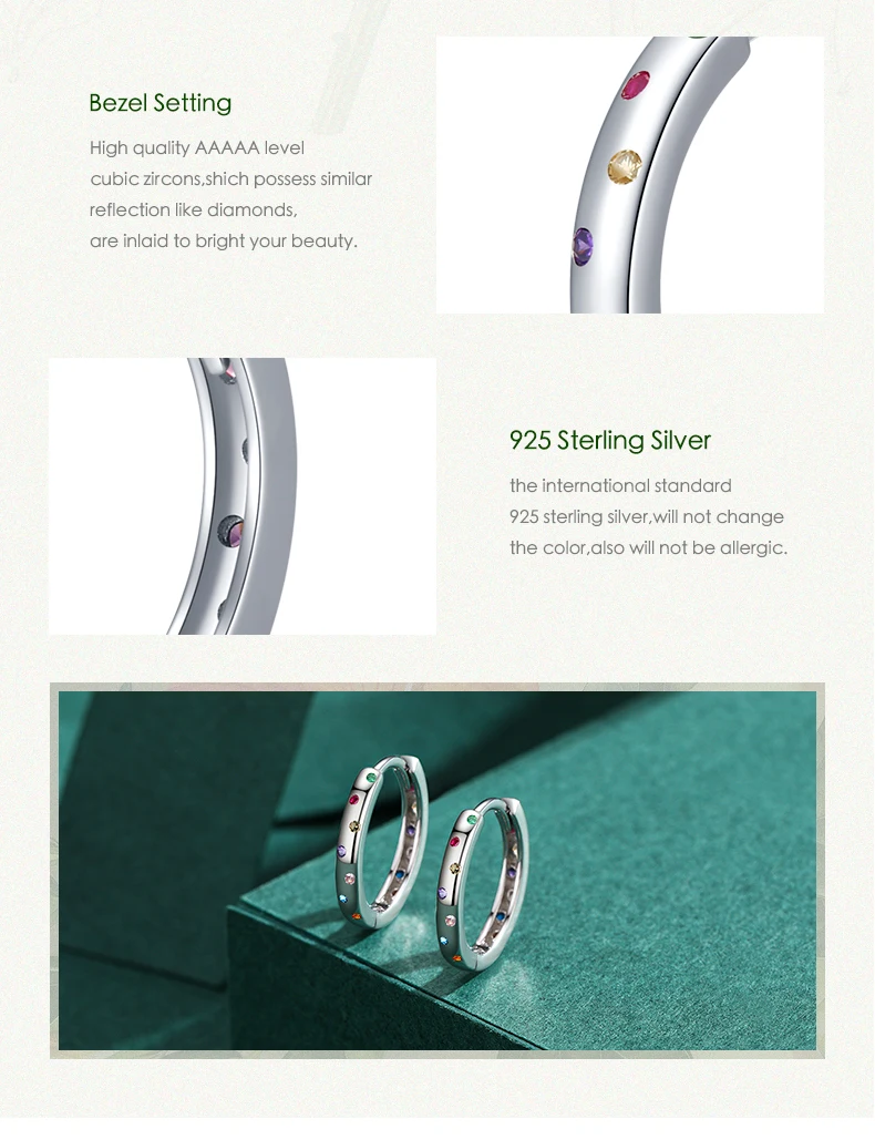 Pendientes de aro MODIAN de plata de ley 925 auténtica con circonitas de color arcoíris y círculos simples para mujer, joyería fina y elegante a la moda.