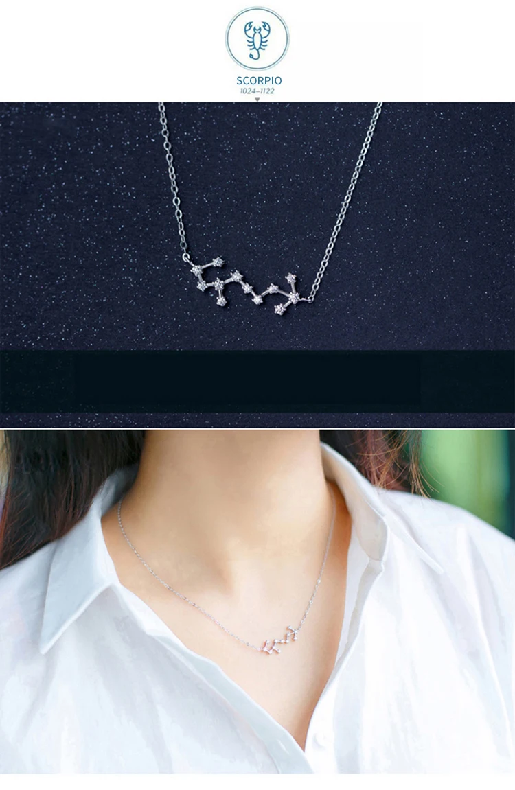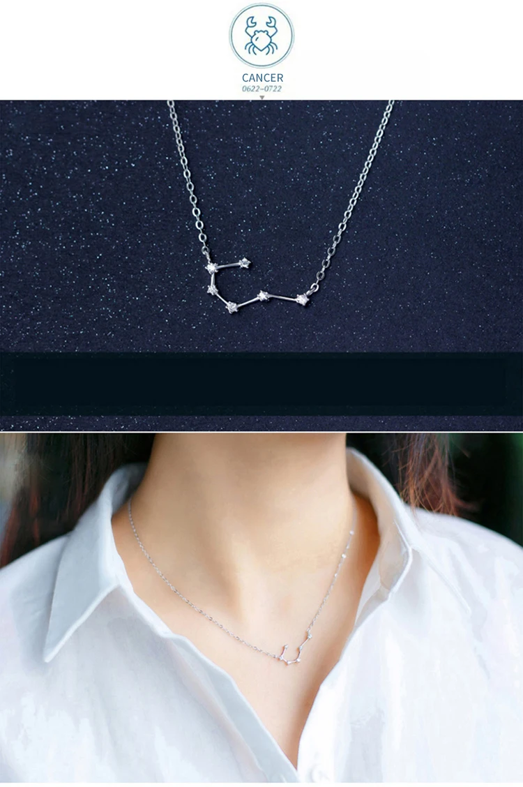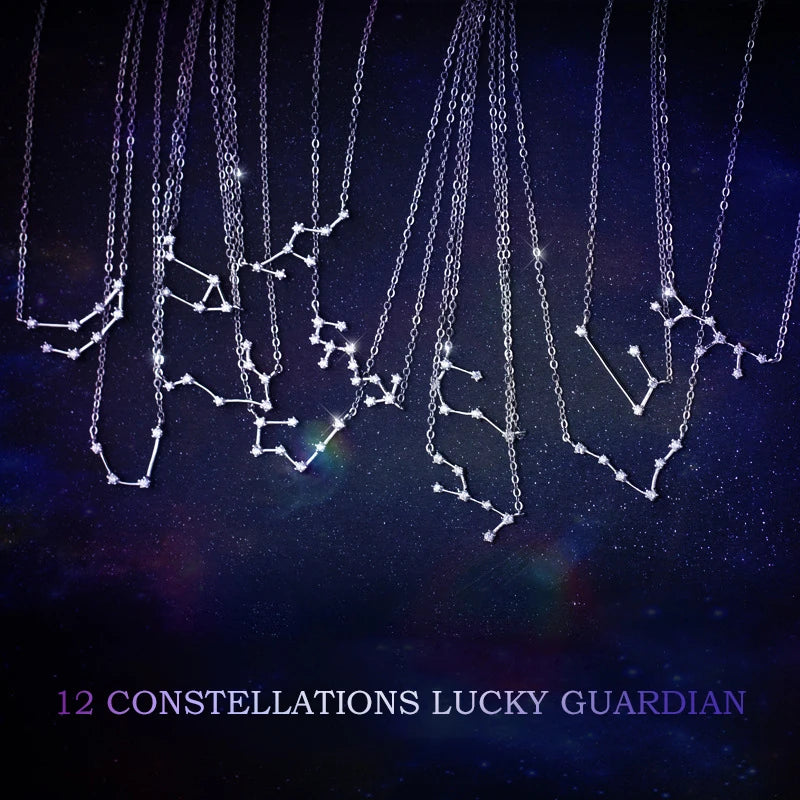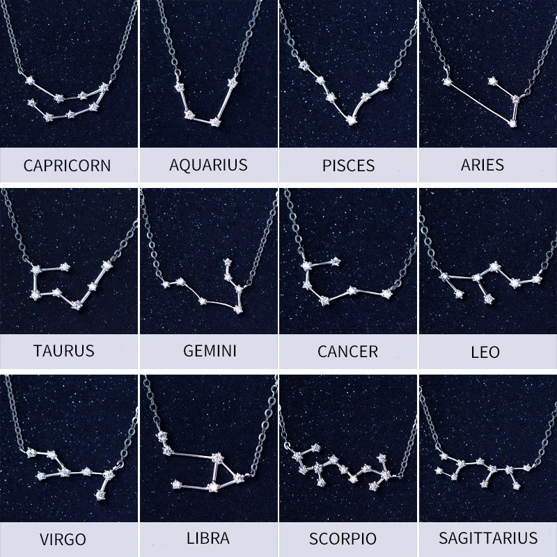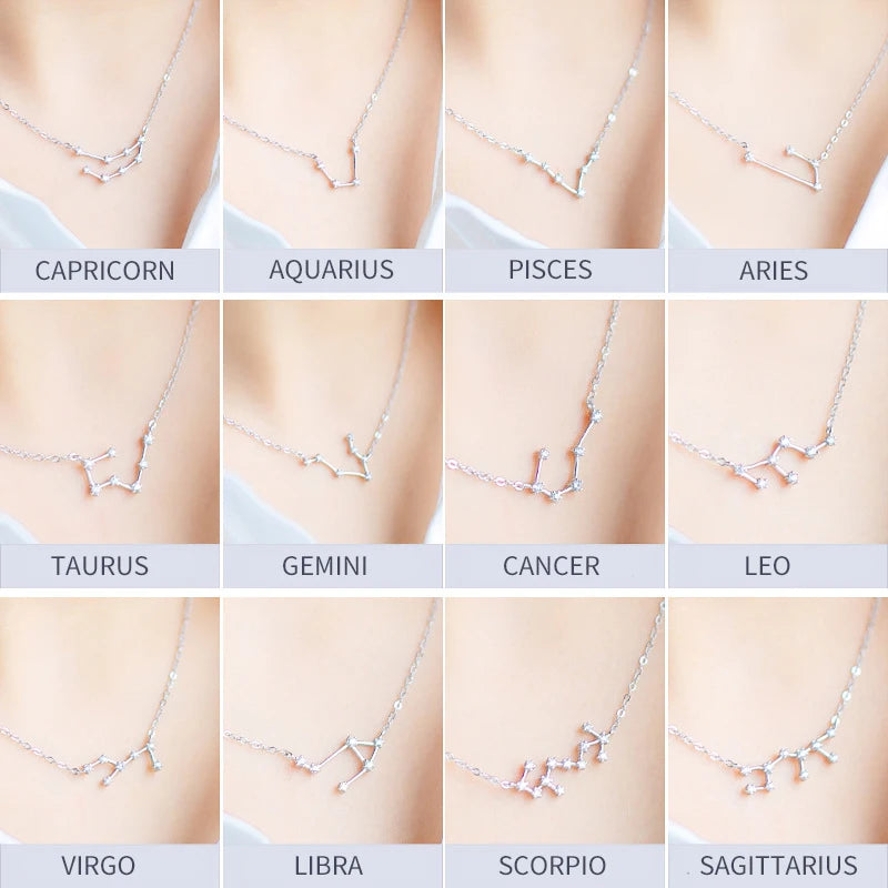 Collar con colgante de cristal Modian de plata de ley 925 auténtica con doce constelaciones de Aries, Géminis y Capricornio para mujer.