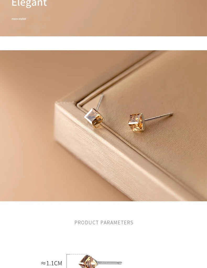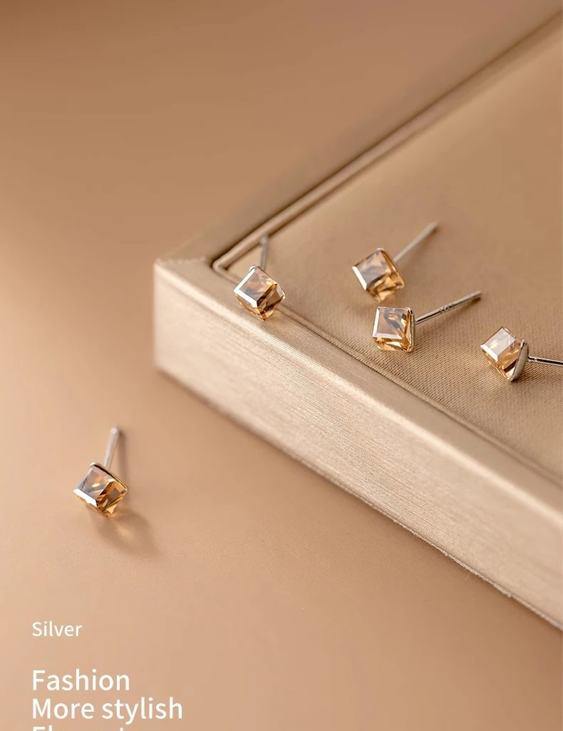 Pendientes de botón de cristal cuadrado romántico de Modian, color champán, para mujer, elegantes pendientes de plata de ley 925, joyería fina de lujo, regalos.