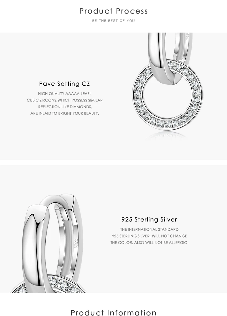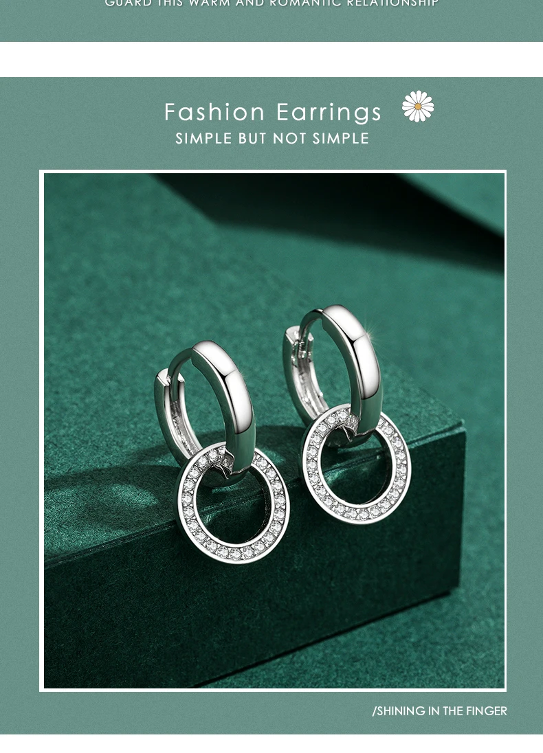 Pendientes Modian de plata de ley 925 con forma de círculo en oro rosa y circonita cúbica transparente para mujer, joyería de boda