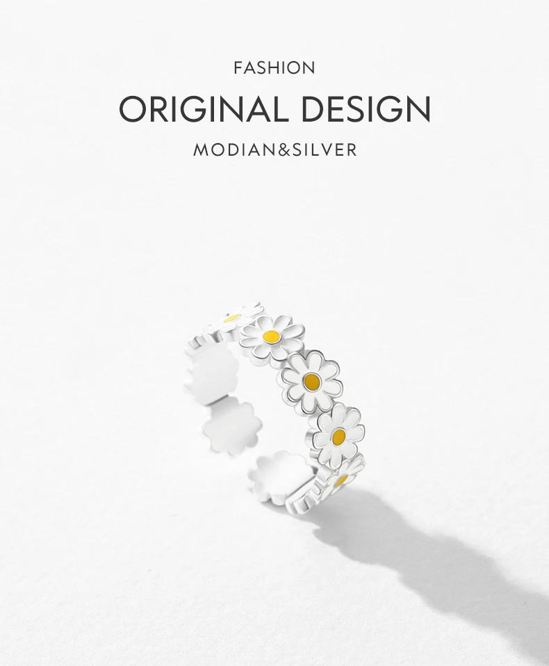 Anillo ajustable de lujo con diseño de margaritas y esmalte de plata esterlina 925 maciza de MODIAN para mujer, joyería fina para fiestas, regalo de cumpleaños
