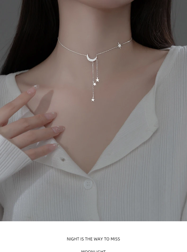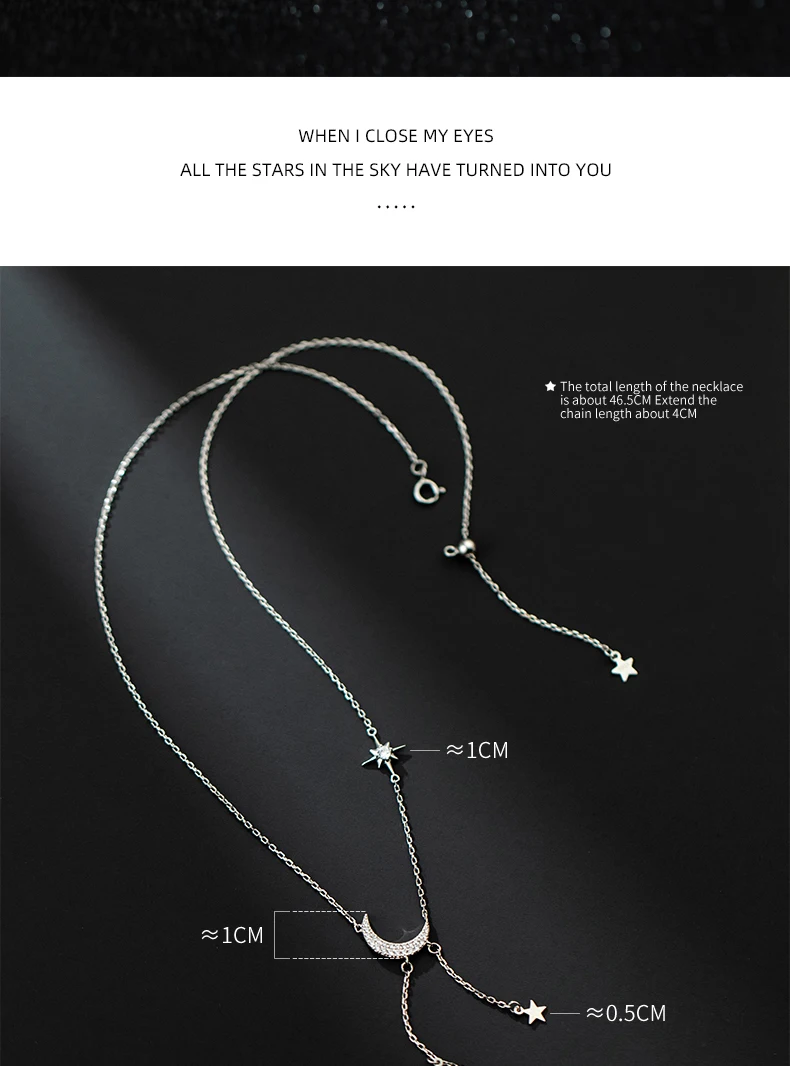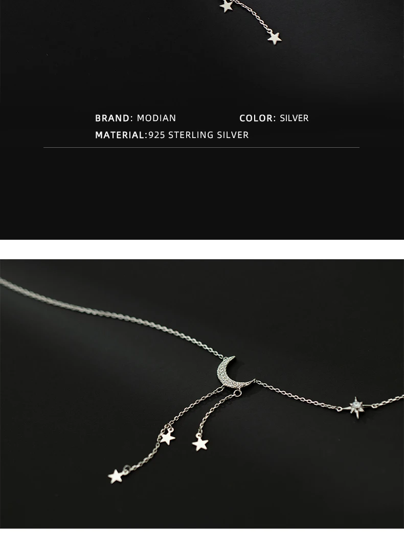 Gargantilla corta MODIAN de plata esterlina 925 maciza con diseño de luna y estrellas, cadena de eslabones con dijes para mujer, joyería fina, regalos