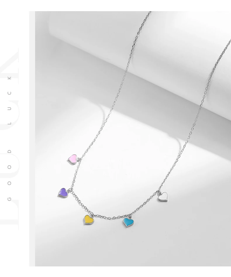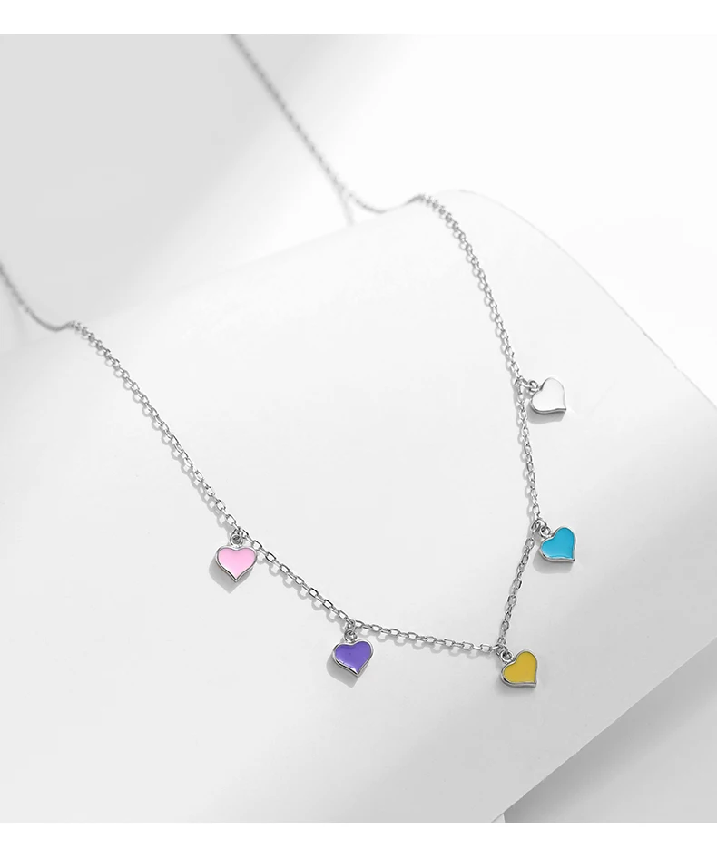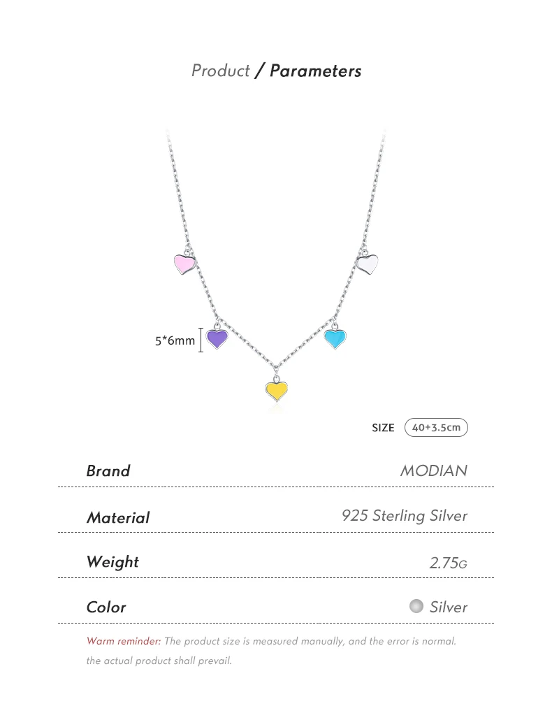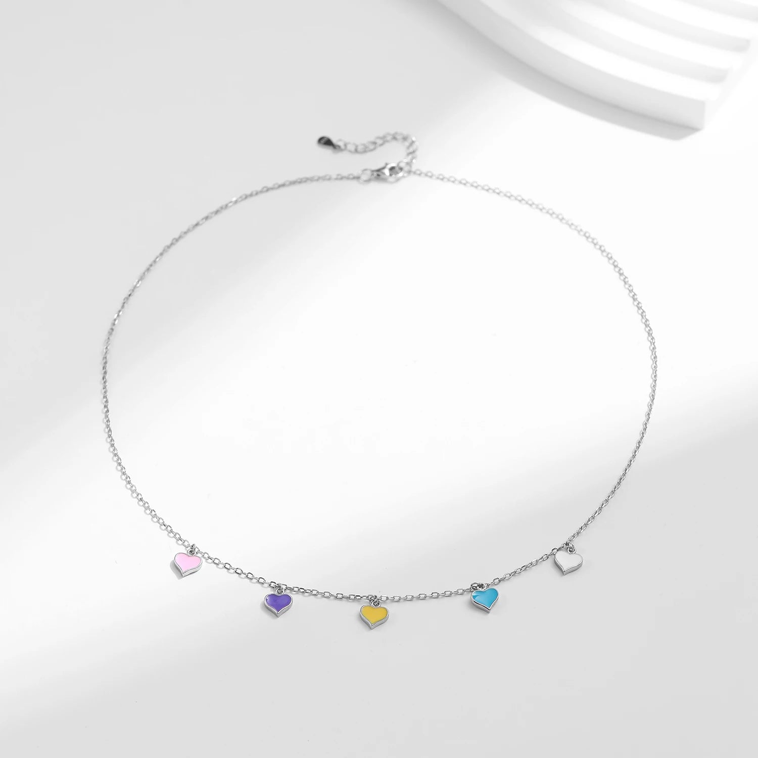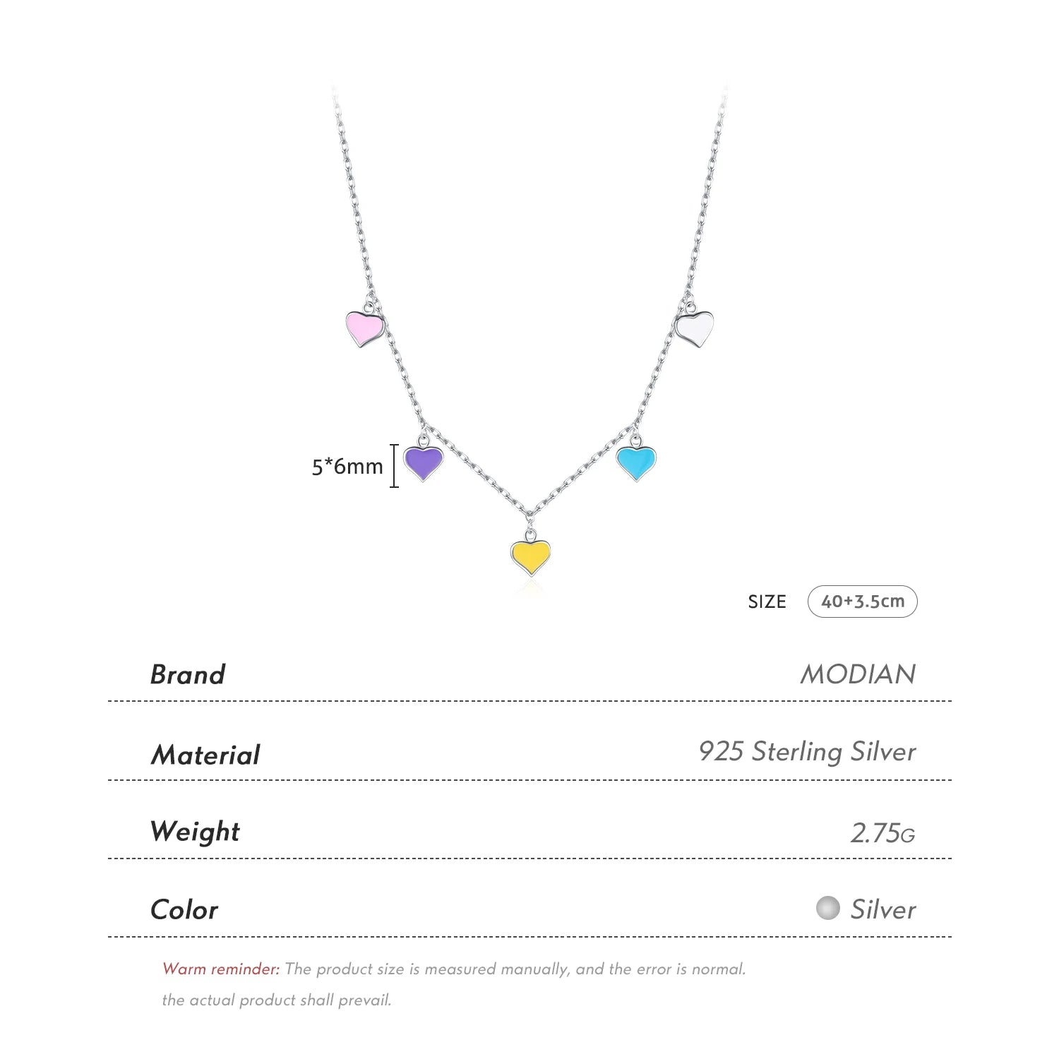 Collar con colgante de corazón esmaltado de colores arcoíris de plata esterlina 925 maciza MODIAN, cadena de eslabones ajustable para mujer, joyería fina