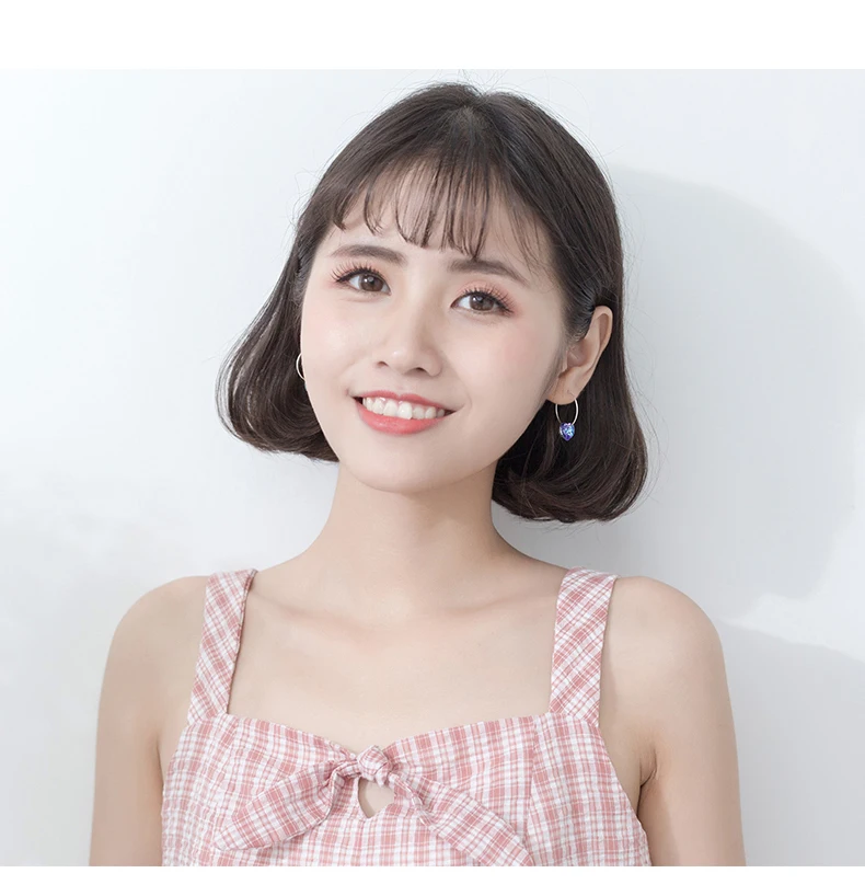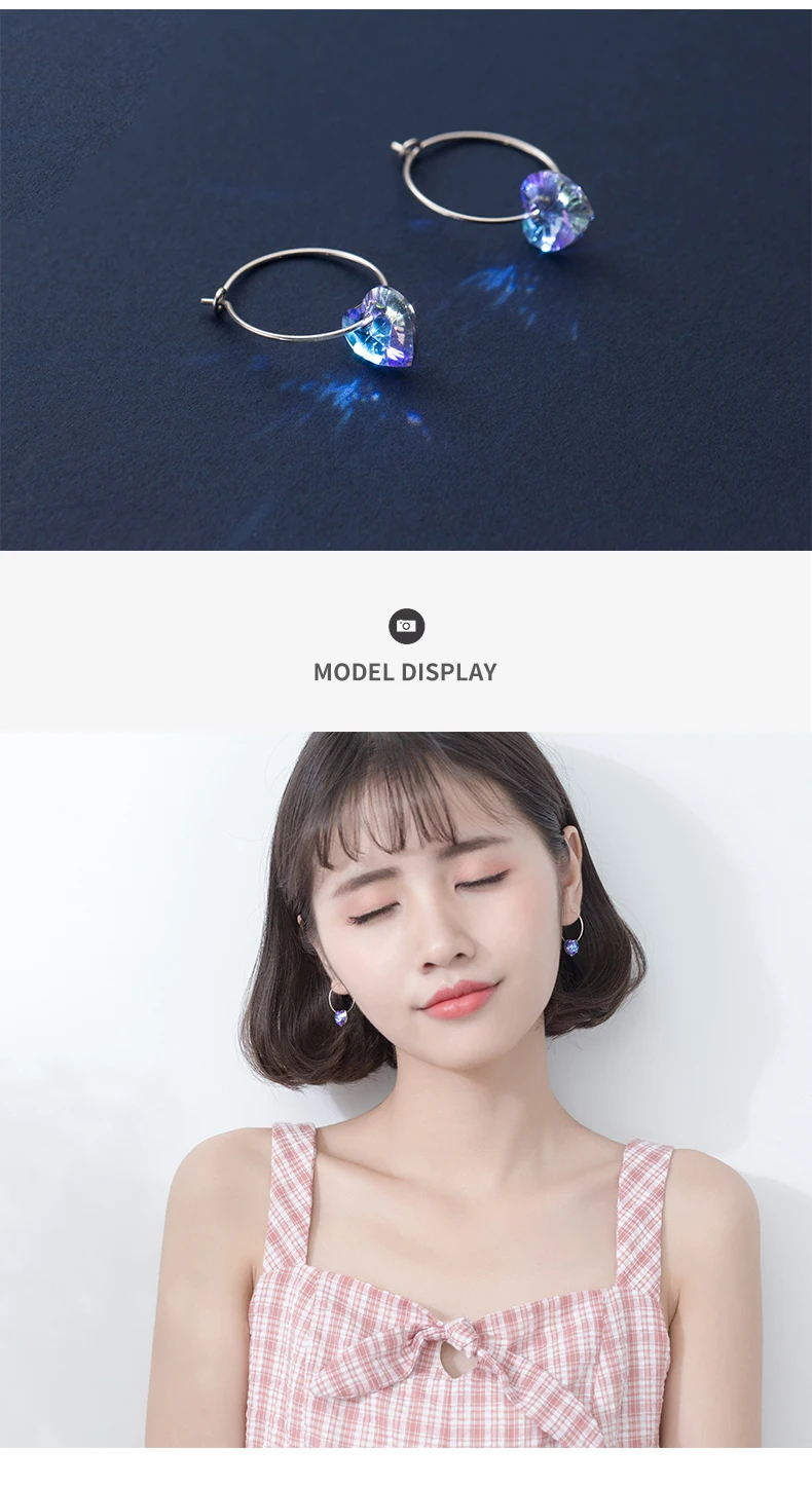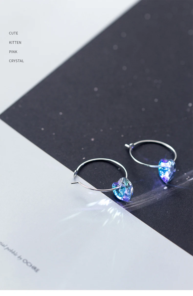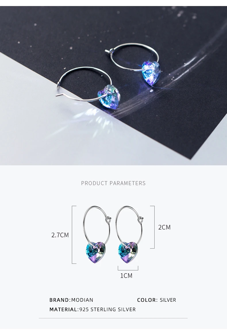 Pendientes de aro Modian con cristales azules brillantes para mujer, diseño clásico de corazón en plata de ley 925, joyería de lujo, accesorios para mujer