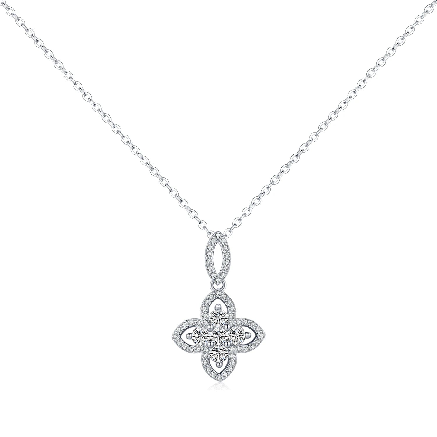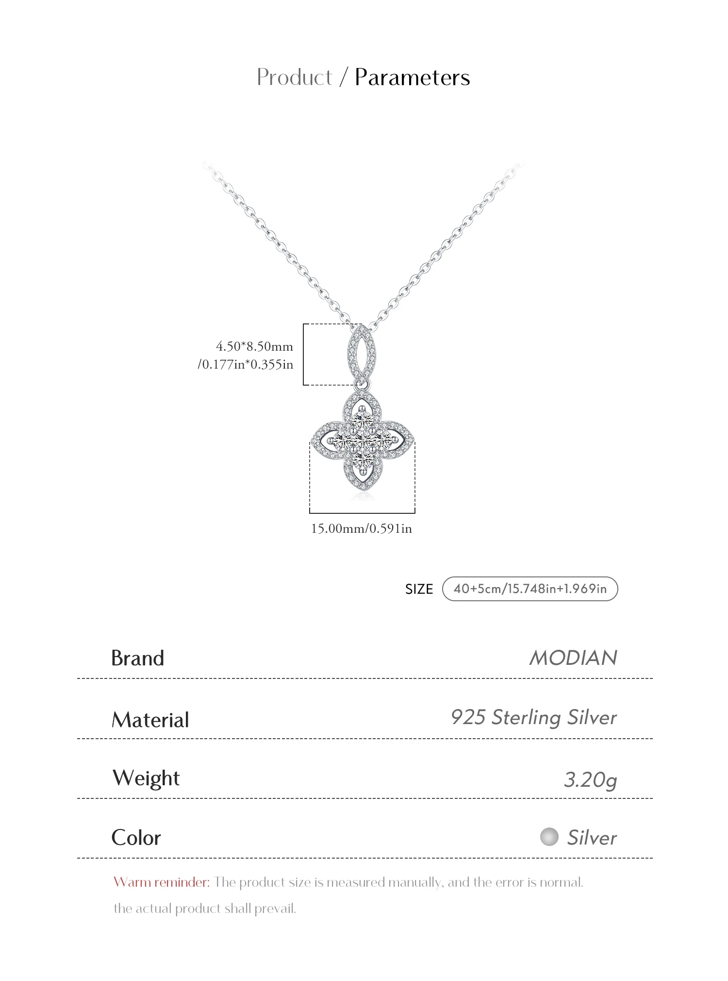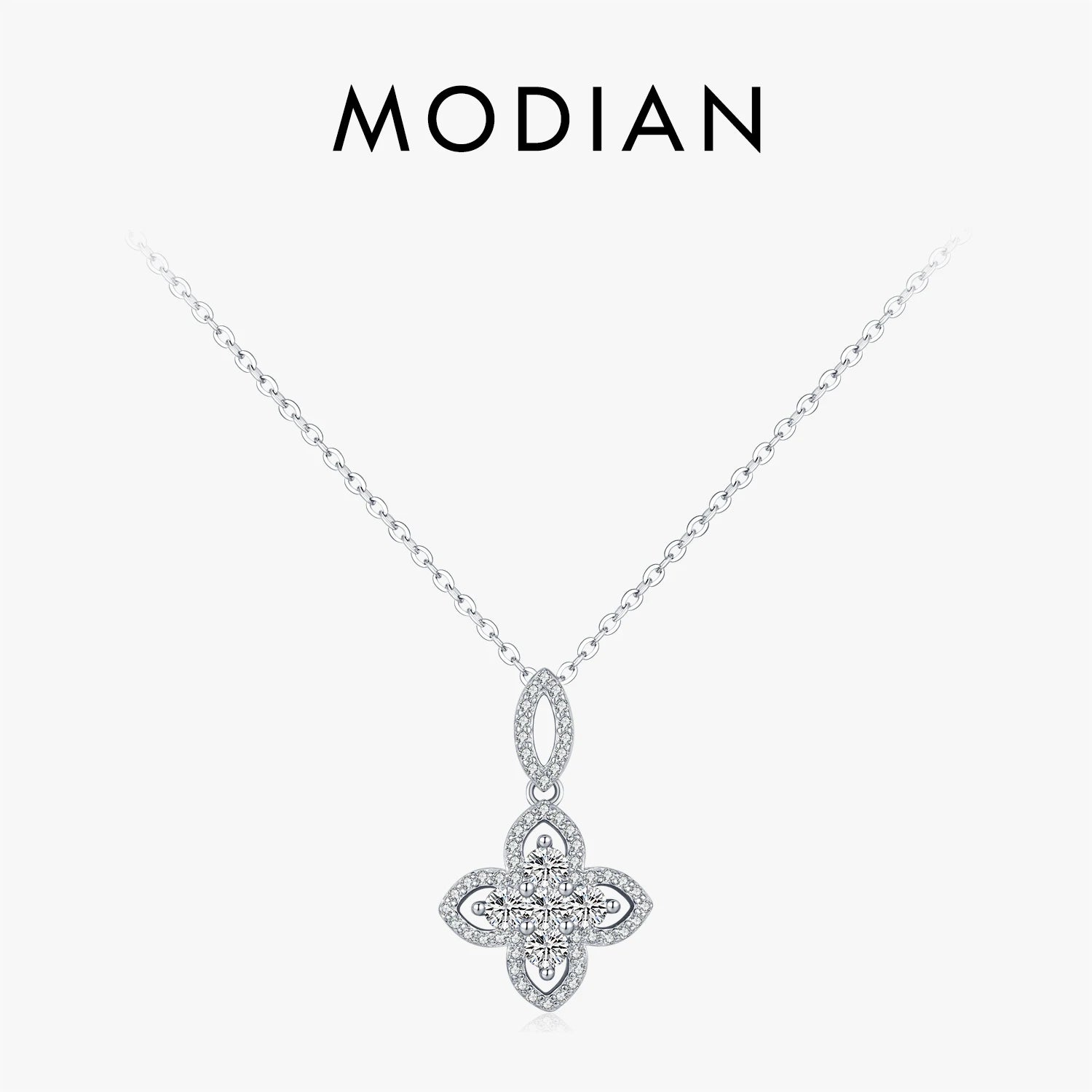 Collar de cadena con eslabones de trébol de cuatro hojas y circonita cúbica brillante de MODIAN, colgante elegante de flor de plata de ley 925 para mujer, joyería