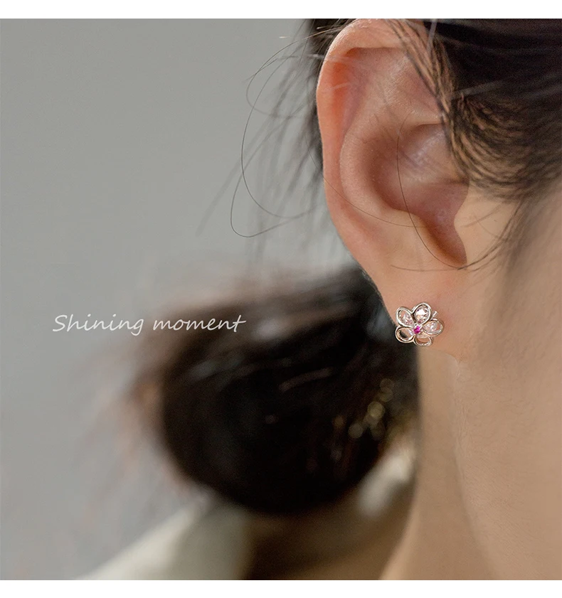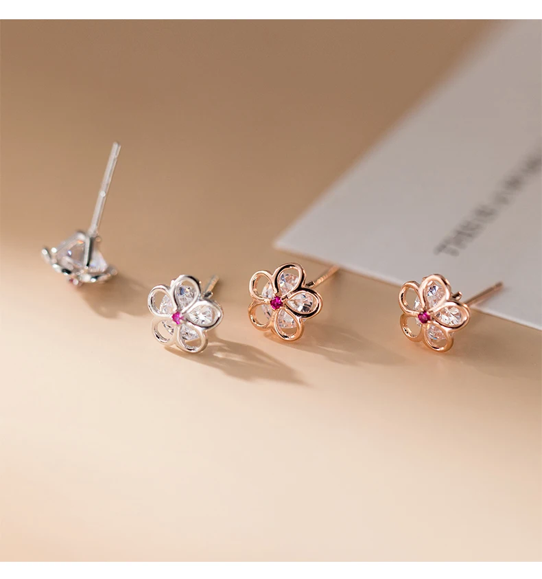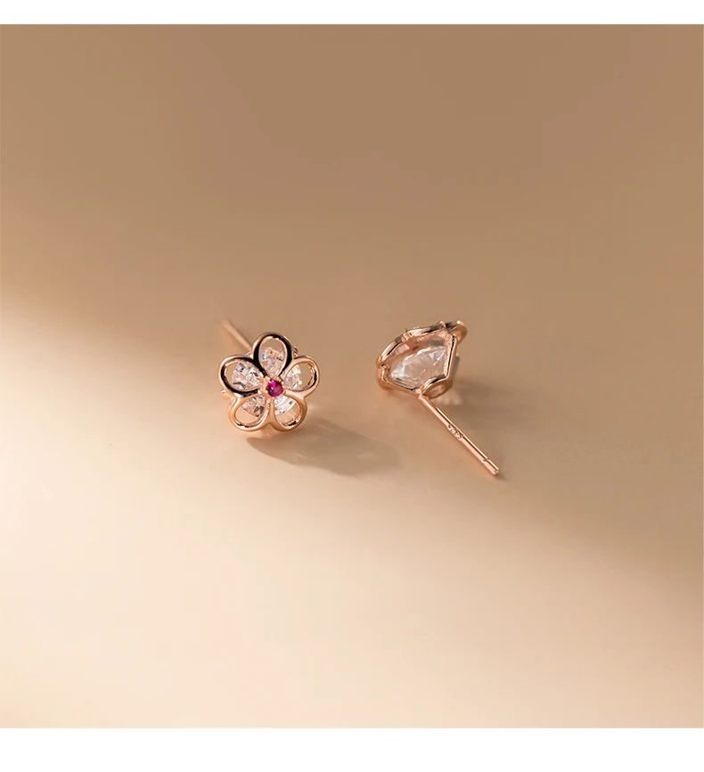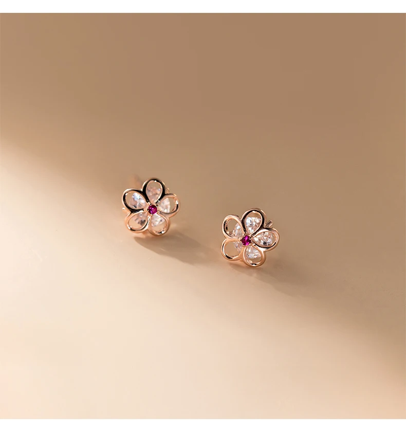 Pendientes Modian Summer Beach de plata de ley 925 100% con circonitas rosas y cristales para mujer, joyería de plata con flor hueca de circonita cúbica transparente