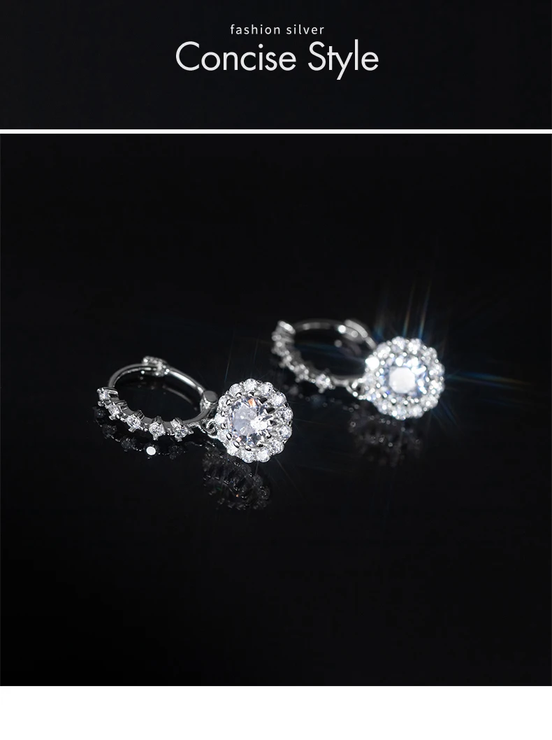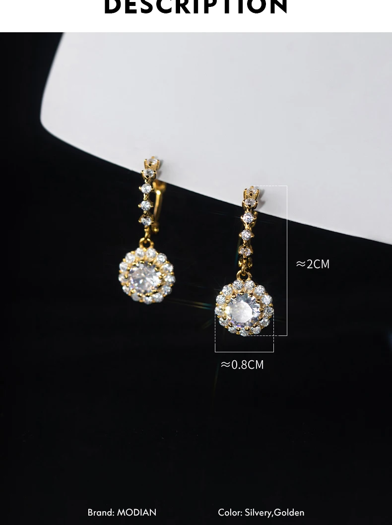 Pendientes colgantes de lujo Moidan con circonitas redondas brillantes, de plata de ley 925, con dijes colgantes para mujer, joyería de boda.