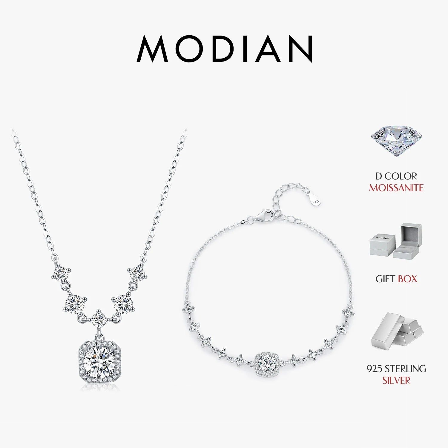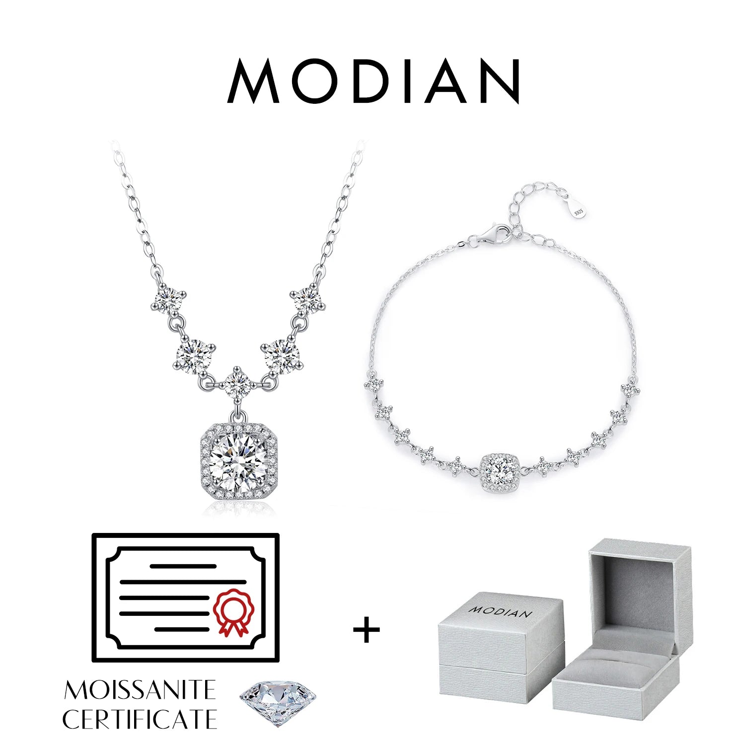 MODIAN D Color Moissanite 925 Sterling Silver Luxury Geometric Charm Necklace Bracelet For Women Wedding Statement Jewelry Set