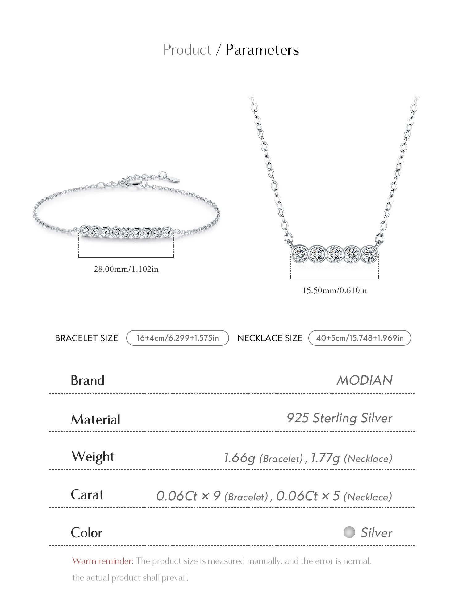 MODIAN D Color Moissanite Link Chain Pendant Necklace 925 Sterling Silver Trendy A Row Round Bracelet For Women Fine Jewelry Set