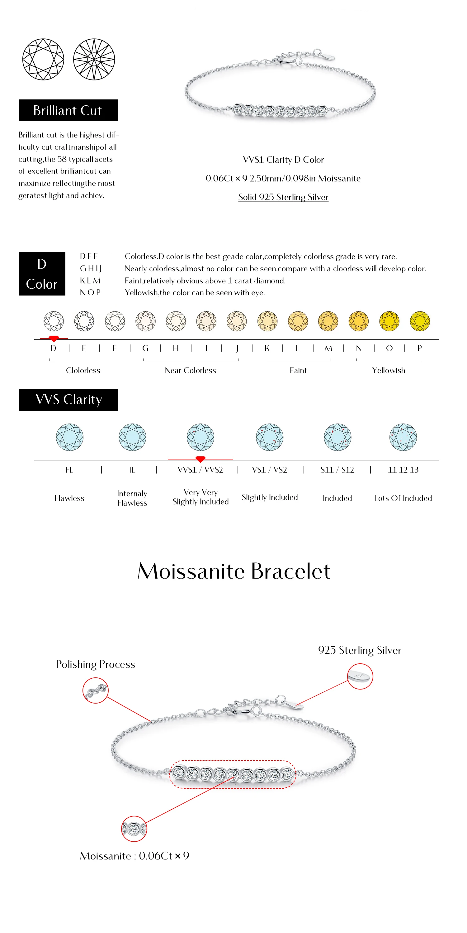 Bracelet Main Stone Weight/Pieces:9Moissanite Diamond 0.06 Carat x 9